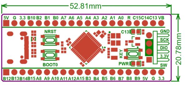 Размеры платы: 52.81 x 20.78 x 1.6 мм