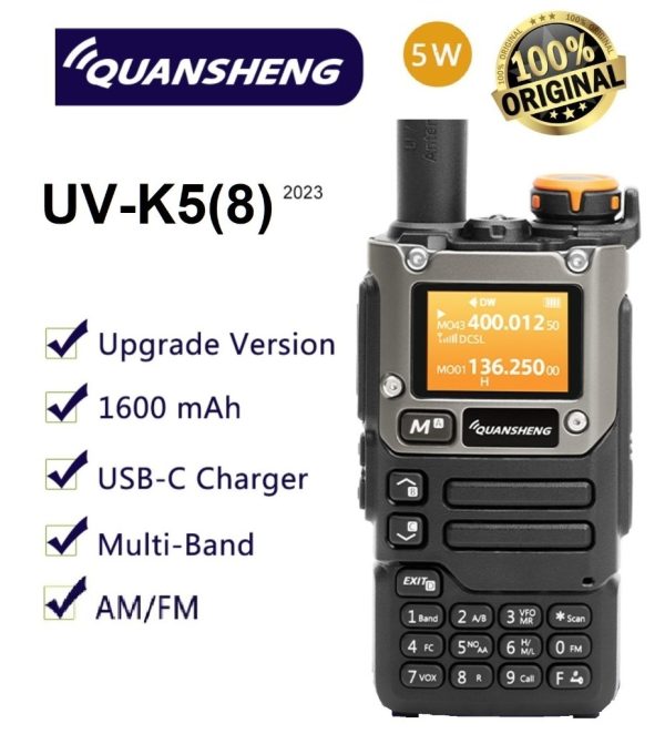 Многодиапазонная радиостанция с диапазоном частот 50–600МГц и выходной мощностью 5 Вт. Зарядный порт USB Type-C и зарядный стакан.